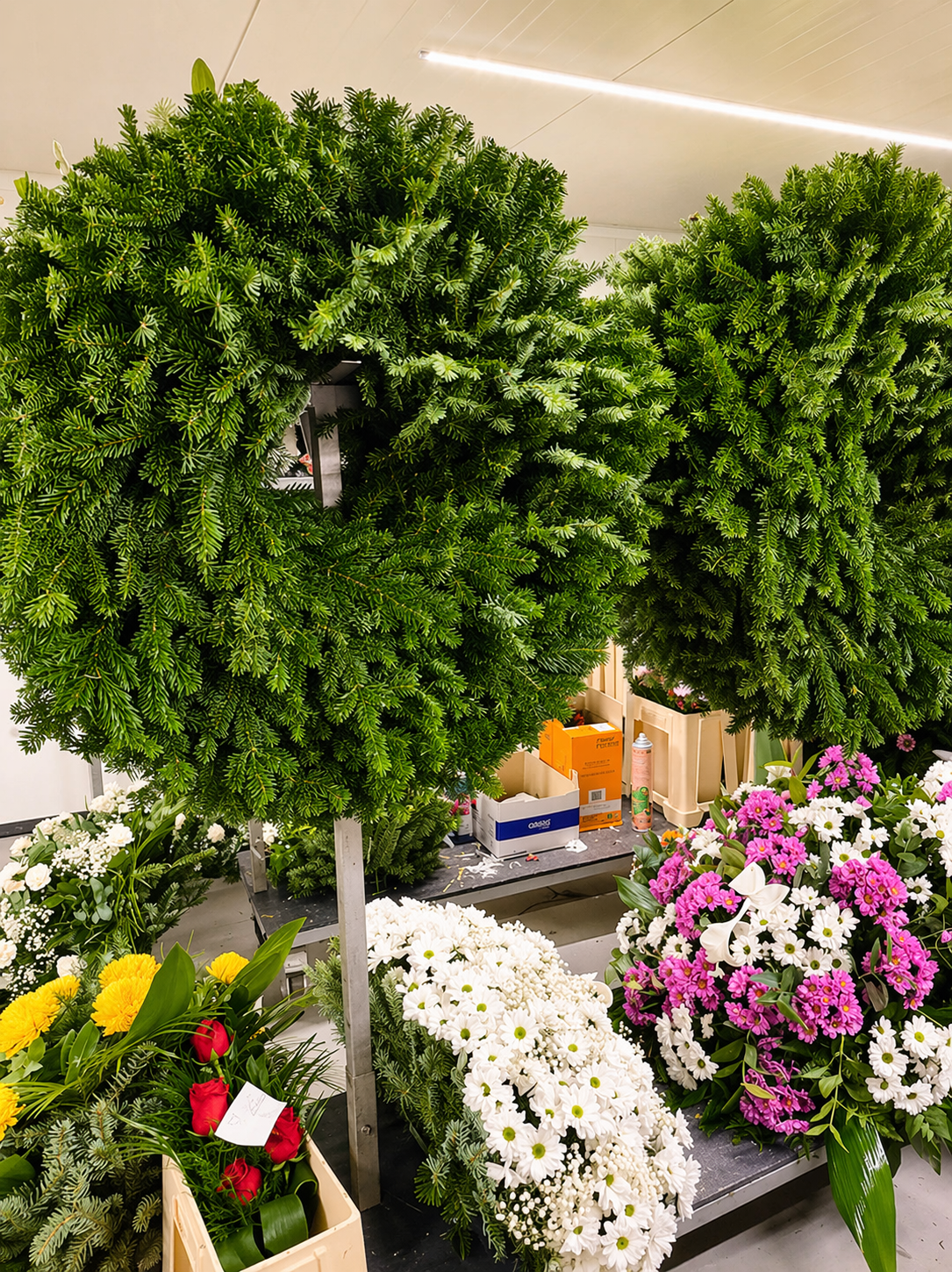Navrhujeme a realizujeme také celkové kompozice posledního rozloučení, včetně technicky náročnějších řešení, atypických tvarů a individuálních realizací. Díky vlastnímu zázemí dokážeme zajistit nejen floristickou část zakázky, ale podle potřeby také nosné konstrukce, další technické prvky i navazující logistiku. Každodenní rozvozy po celé Praze a okolí zajišťujeme vlastní dopravou, což nám umožňuje udržovat vysokou míru přesnosti, spolehlivosti a kontroly nad celým průběhem realizace.